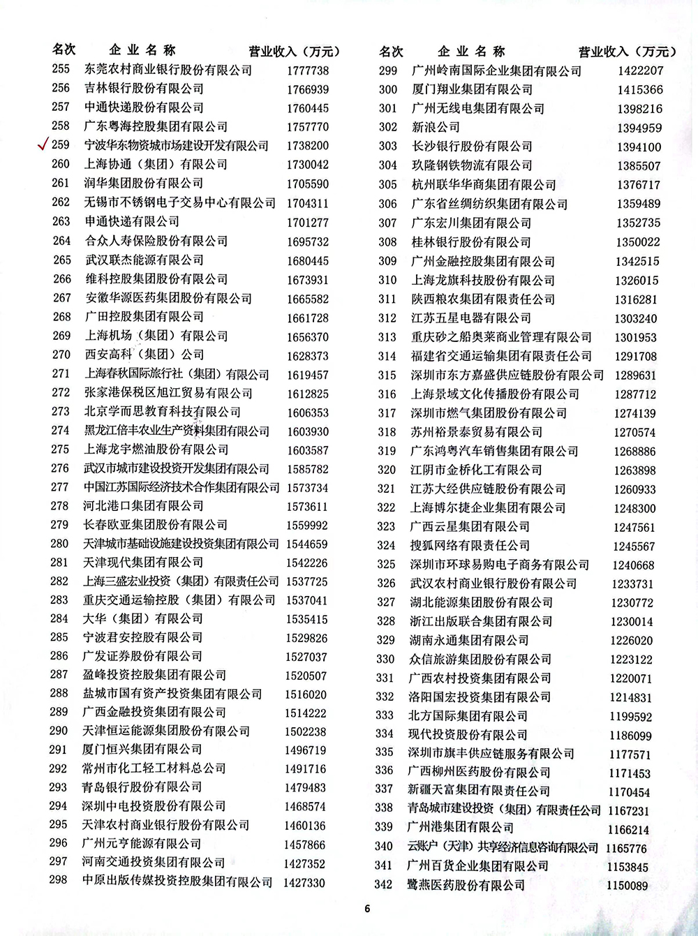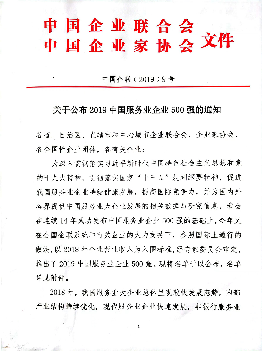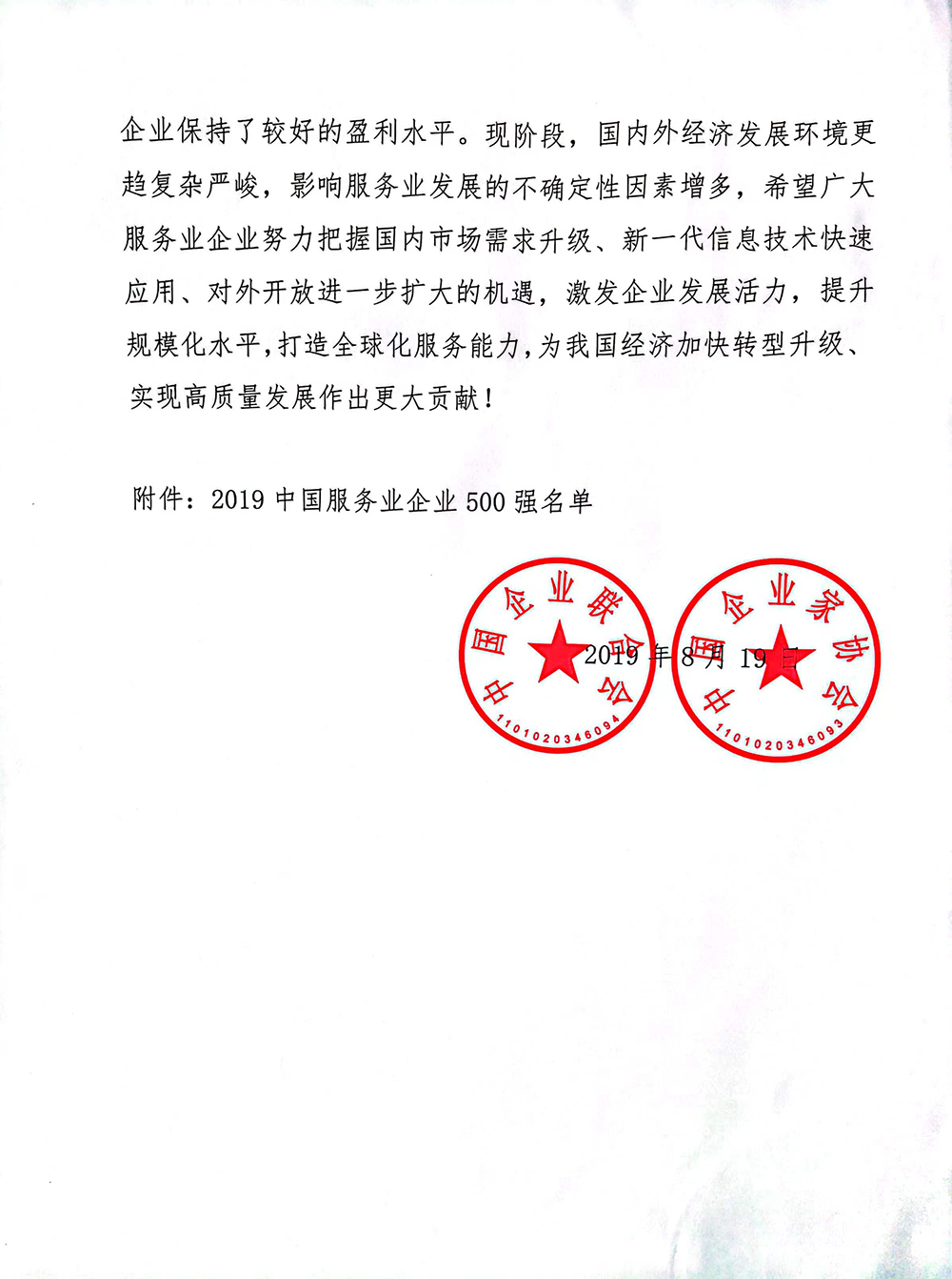 2019中国服务业企业500强259位