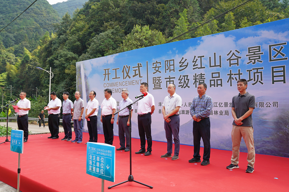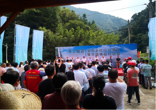 2021年9月17日上午10点18分,红山谷景区暨市级精品村项目开工仪式在杭州市淳安县安阳乡红山岙村隆重举行。活动由山海协作产业园管委会、淳安县安阳乡人民政府、浙江亿景旅游开发有限公司联合主办,杭州市农业农村局、县发改局、县林业局、县文化和广电旅游体育局协办。杭州市农业农村局副局长屠国兴,中共淳安县委常委、副县长吴克青,淳安县人大常委会副主任管国良,宁波华东城集团有限公司董事长竺保国出席了开工仪式。