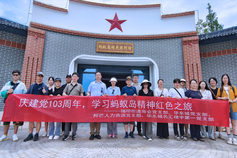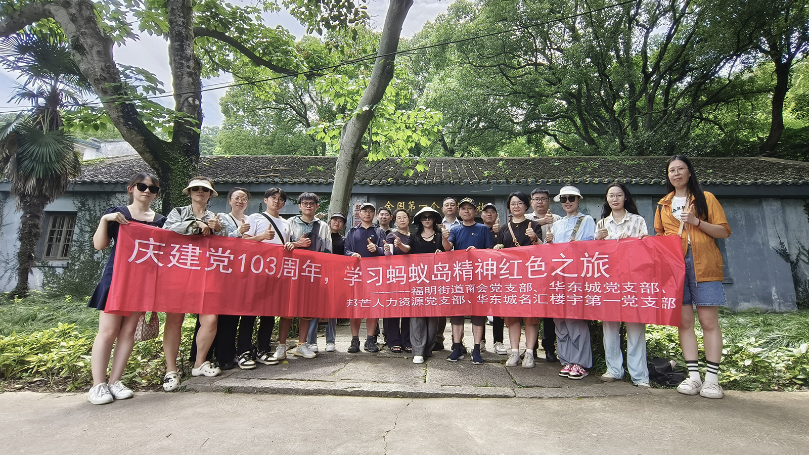 福明街道商会党支部、华东城党支部、邦芒人力资源党支部、华东城名汇楼宇第一党支部一起参与共建,活动中,党员们参观了蚂蚁岛人民公社旧址、马金星纪念馆、蚂蚁岛村史陈列室等地,通过重走习近平总书记的舟山足迹,深切感悟蚂蚁岛精神的丰富内涵和时代价值。