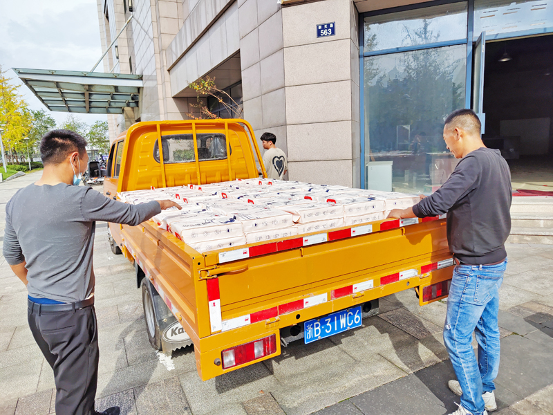 据了解,这些有机大米来自270多公里外的杭州市千岛湖安阳乡,从2018年起,华东城集团便自发与安阳乡开始了结对扶贫项目,通过旅游景区开发、产业结对等形式帮助当地增加集体经济收入。“作为结对扶贫项目,我们已连续五年从当地采购了有机大米、山茶油等当地农产品。现在这些大米作为慰问物资,将继续传递爱心的力量。”华东城集团负责人竺黎俪说。物资捐赠现场,华东城集团和福明街道工作人员化身“搬运工”,每到一个捐赠点,便一起将袋袋大米搬下车放置妥当。经过一上午的分发,600袋爱心大米终于送达到了6家单位。