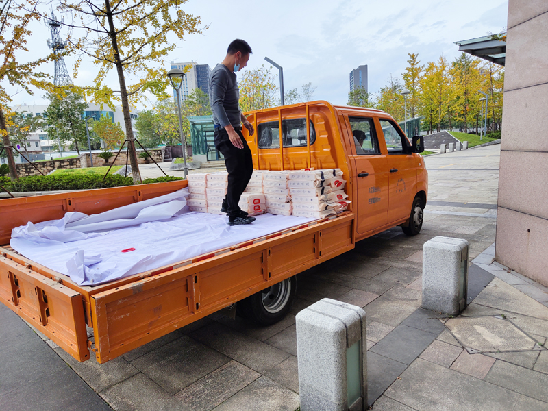11月29日上午,福明街道辖区爱心企业华东城集团有限公司将6000斤有机大米分3趟运上车,作为防疫专项物资分别送往了鄞州人民医院医共体东部新城分院、东部新城交警中队、福明派出所等6家单位。