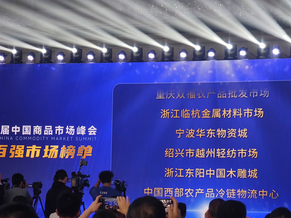 11月8日,第十三届中国商品市场峰会在义乌召开。大会由国家市场监督管理总局、浙江省人民政府主办,浙江省市场监督管理局和义乌市人民政府承办。峰会发布《中国商品市场综合百强》榜单,综合百强榜单是在全国调研的基础上,综合考虑市场硬件基础设施、软件规范完善程度、服务意识、能力和水平,依据规模、管理人员、收入和利润等指标经测算得出,旨在遴选出一批具有风向标示范意义的商品市场。